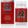 22 Days PE es un complemento alimenticio en cápsulas diseñado para favorecer la vitalidad masculina. Su fórmula a base de vitaminas y extractos vegetales estimula la circulación sanguínea, contribuye al buen funcionamiento de los órganos sexuales y apoya la actividad hormonal, ayudando a reforzar la potencia, la fuerza y la libido.