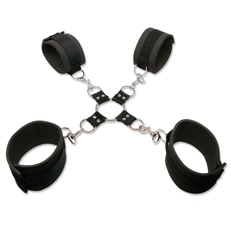 Las esposas se unen con el hogtie con cadenas de metal y se ajustan fácilmente con velcro a la mayoría de los tamaños.