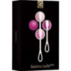 Set de 4 bolas Geisha con colores y pesos diferentes. Cuenta con dos fundas de silicona con tiras de silicona flexible para una cómoda extracción. Podrás combinar todas las bolas tú quieras y ejercitar tu suelo pélvico a tu ritmo.