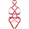 Teddy con arnés convertible en cuero vegano con anillos y cadenas de corazones dorados, tachuelas, braguita desmontable y correas ajustable.