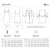 Un conjunto de lencería excepcionalmente hermoso hecho de satén negro brillante, una bata de baño con camisola que llega hasta la mitad del muslo. La parte delantera y las mangas largas de la bata, atadas a la cintura con un cinturón, están decoradas con un bonito encaje. Camiseta de tirantes finos ajustables, decorada con el mismo encaje en el busto. Tanga incluida
