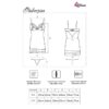 Conjunto compuesto por camiseta y tanga en un atemporal color negro. El conjunto se basa en una combinación sensual de encaje elegante y malla misteriosa, que al mismo tiempo cubre el cuerpo y atrae la atención. El tanga del juego tiene un corte clásico, que es sólo un fondo para un camisón fenomenal con un corte sofisticado. El modelo destaca gracias a las rayas decorativas en el escote.