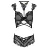 El conjunto Palmenom negro consta de dos partes: sujetador y braguita. Estos dos elementos combinados en un conjunto se ven increíbles y cualquiera que vea a una mujer en este conjunto caerá de rodillas. La ropa interior tiene un acabado de encaje y su ventaja adicional son los tirantes alrededor del torso. En las zonas donde no hay encaje negro, hay un seductor material negro transparente. El conjunto Palmenom hará que cada mujer que lo lleve se sienta especial. Es perfecto para lucir en una velada romántica para dos, para celebrar una ocasión especial en la que quieras sorprender a tu ser querido o simplemente para añadir un poco de sabor.