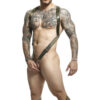 El arnés elástico con espalda cruzada, que ofrece total soporte y comodidad, es un arnés suave de microfibra fabricado en un material elástico. No solo se ajusta perfectamente al cuerpo, sino que también proporciona una sensación de seguridad gracias a su espalda cruzada. La abertura frontal se realza con anillas metálicas.