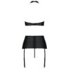 El conjunto Nancy es un conjunto de tres piezas de Passion, que incluye una parte superior sujeta al cuello, liguero y tanga cortado con audacia. Todo esto está hecho de cuero negro, que está decorado con numerosas rayas cruzadas que revelan las cualidades femeninas.