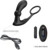 Este anillo para el pene con plug anal con control remoto es un anillo combinado para el pene y la bola con un tapón anal vibratorio sujeto de forma segura.